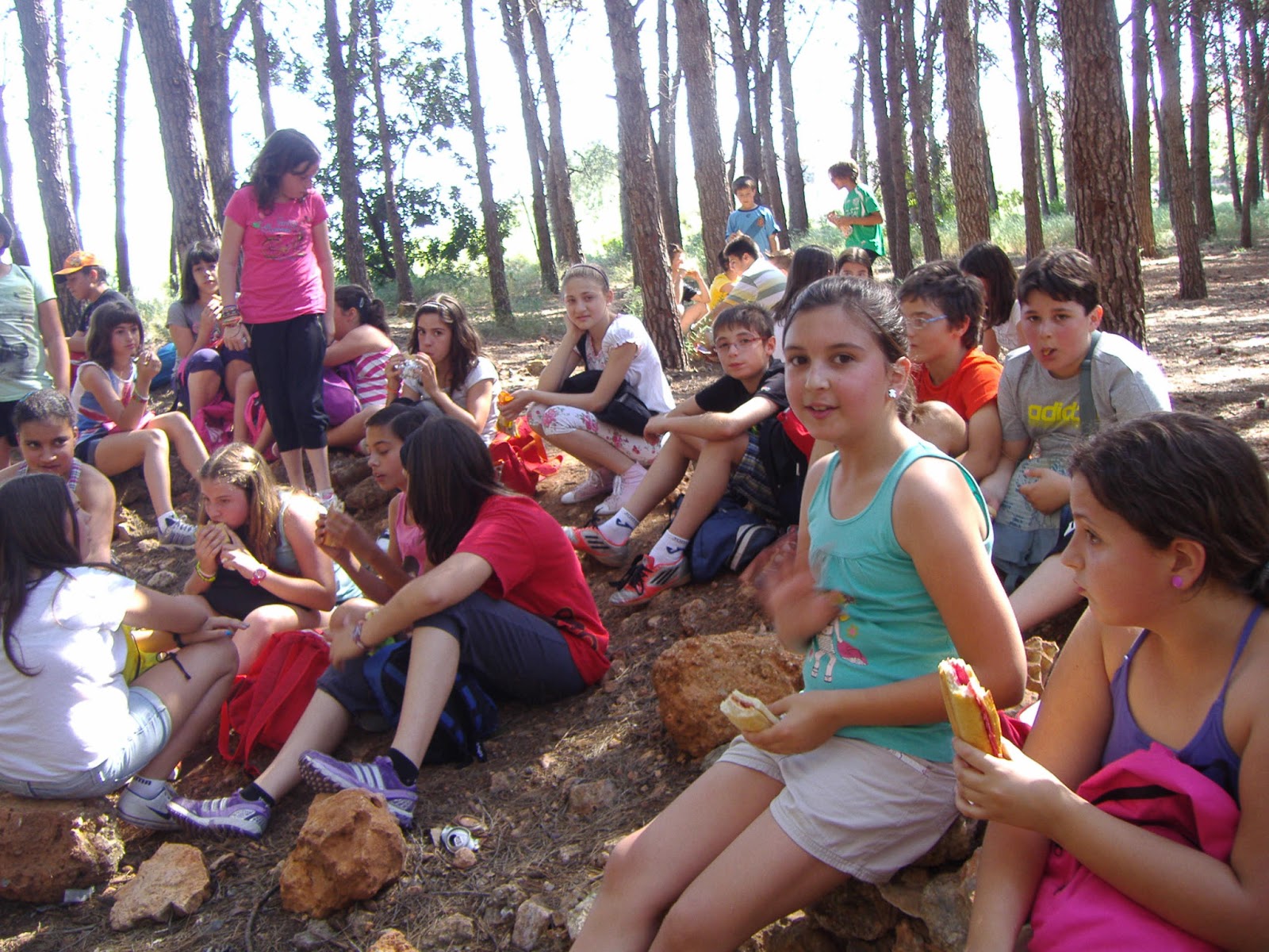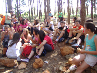 En arribar vam anar cap a alguns llocs del poble com l'esglèsia, l'únic supermercat, un llac, el pinar,... i ells ens van explicar coses sobre cada lloc. Al pinar vam esmorzar tots junts i després ens vam anar a un parc on vam jugar a un joc molt divertit , "pilota al mig" (un joc que es va inventar el nostre tutor Manolo). Després ens vam despedir, i unes companyes es van ficar a plorar i tot.